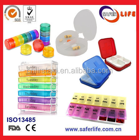 Dieses Produkt des farbenfrohen Pulverbox -Stils ist für weibliche Benutzer besonders attraktiv. Pillen auf der ringförmigen Platte können durch das Rollen der Kunststoffabdeckung leicht extrahiert werden.